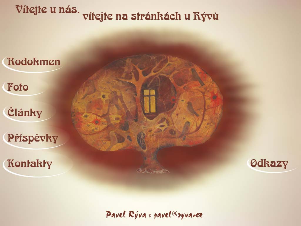 Vstoupili jste na rodové stránky rodiny Rývů. Stránky jsem začal tvořit v lednu 2007, od toho data se též učím pracovat na webu. Jsem tedy amatér a samouk, tak prosím profíky o shovívavost, zatím se učím. Doufám, že se ke mě připojí některý z příbuzných, který to bude umět. Pevně věřím v Davida, který studuje PC grafiku, ale i v další, co se umějí vyjádřit a jsou schopni pro věc něco udělat. Jak jsem se dostal k sestavování rodokmenu? Asi jako většina ostatních jsem o historii a o rodokmenu neměl zájem, šlo to kolem, až do doby než zemřel můj otec. On byl nejmladší z generace a zemřel ve svých devadesáti letech a s ním odešla rodinná paměť, ústní kronika, kterou uměl obdivuhodně vyprávět. Otec se znal s mnoha svými příbuznými. A já znám jen svou rodinu a rodinu bráchy - najednou jsem se v tom světě ztratil. Tak jsem se začal poohlížet po tom, kde jsou další příbuzní, nebo nositelé stejného jména. No a při brouzdání po webu, jsem občas něco našel a už byl krok k dokumentování. A tak jsem si našel i prográmek pro sestavování rodokmenu Ancestry a zkusil to. Začalo to být zajímavé, zkontaktoval jsem několik Rývů a z obdržených informací, jsem sestavil základní kostru rodokmenu a nyní jde v té dokumentační části o upřesňování a prohlubování vědomostí. Věřím, že se některé větve v jistém čase protnou a spojí. Tak jako Antonínova a Františkova z Bernartic. Věřím, že při pátrání najdeme odpověď na zajímavé otázky jako například : Jak vzniklo příjmení Rýva? Kdo byl tím zatajovaným partnerem Anny? Je něco na tom pravdy, že příjmení Rýva přišlo s Italskými předky ? Kdo byla Anna rodačka z Předměřic? A mnoho dalších otázek.